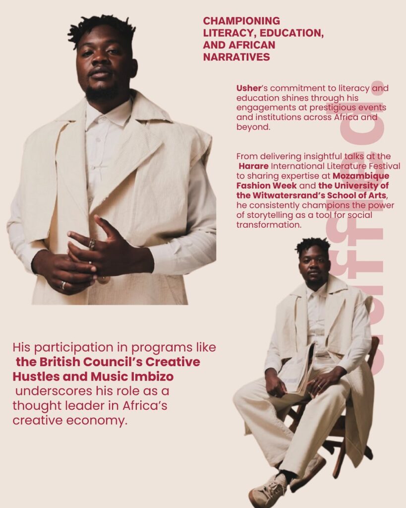 Beyond media and entrepreneurship, Nyambi is deeply committed to literacy, education, and the promotion of African stories. His expertise has been sought after at prestigious events such as Mozambique Fashion Week, the Harare International Literature Festival, and the University of the Witwatersrand’s Student Council, where he shares insights on culture and youth empowerment.
